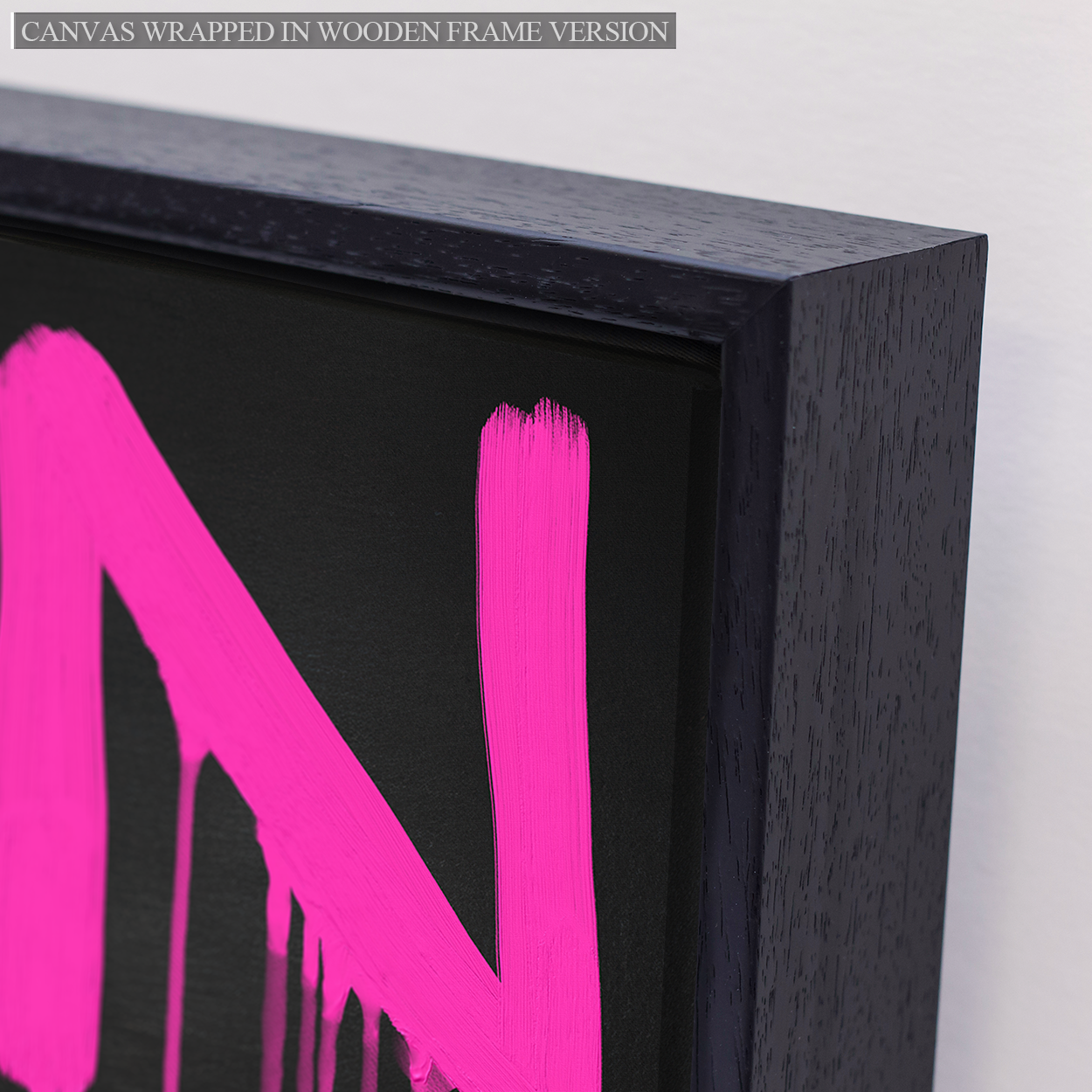 Canvas Only Version (Printed Illusion Frame) - This version of our canvas print features a beautiful "charcoal coloured" printed illusion frame/border effect that we actually print onto the same canvas as the artwork, creating a convincing optical illusion. This print is stretched on to a canvas frame that is 1.5" (38mm) thick with the printed border/illusion-frame effect continuing and wrapped onto the sides of the piece. This version has no real wooden frame - just a printed effect.
